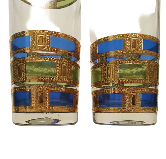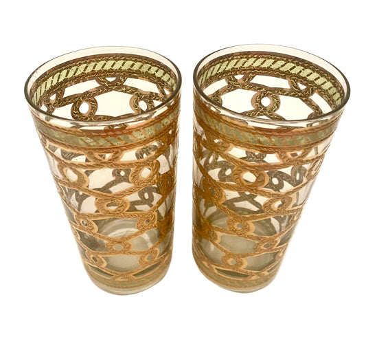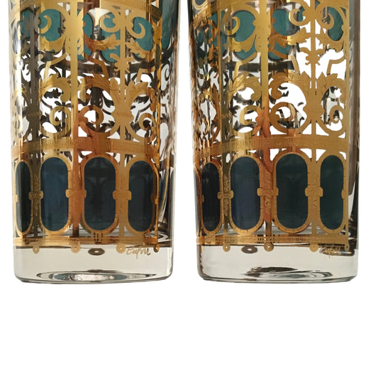 Culver Emerald Scroll Hiballs (Pair) 12 Available