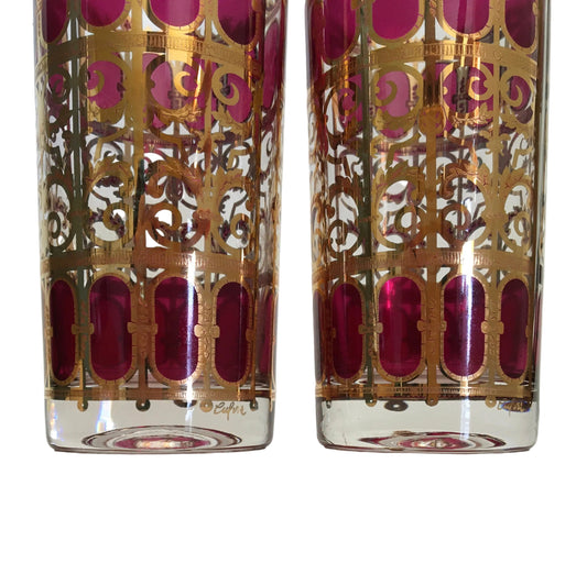 Culver Cranberry Scroll Hiballs (Pair) 3 Available