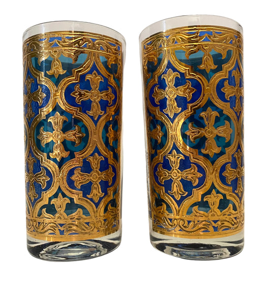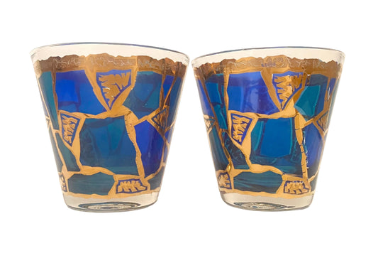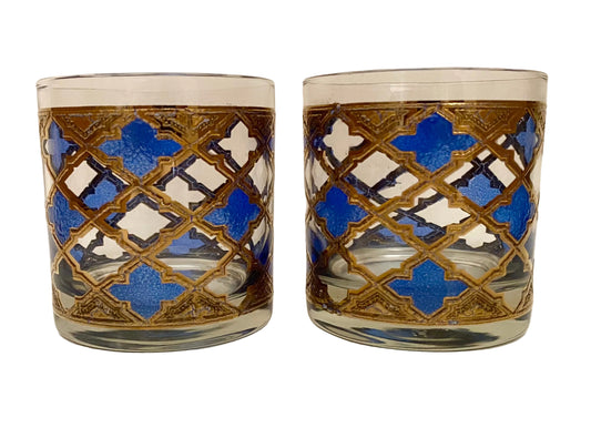 Mid Century Blue Moroccan Rocks Glasses (Pair) 2 Available