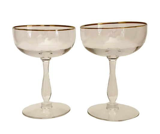 Vintage Gold Rim Coupe/Champagne Glasses (Pair) 2 Available