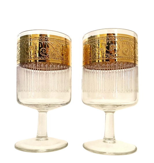 Culver Textured Gold Icicle Wine Glasses (Pair) 3 Available