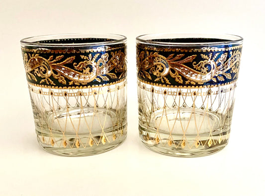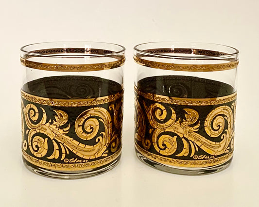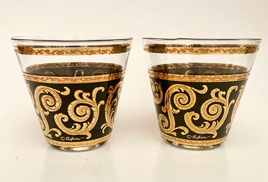 Culver Black Ebony Baroque Executive Cocktails/Whiskey (Pair) 2 Available