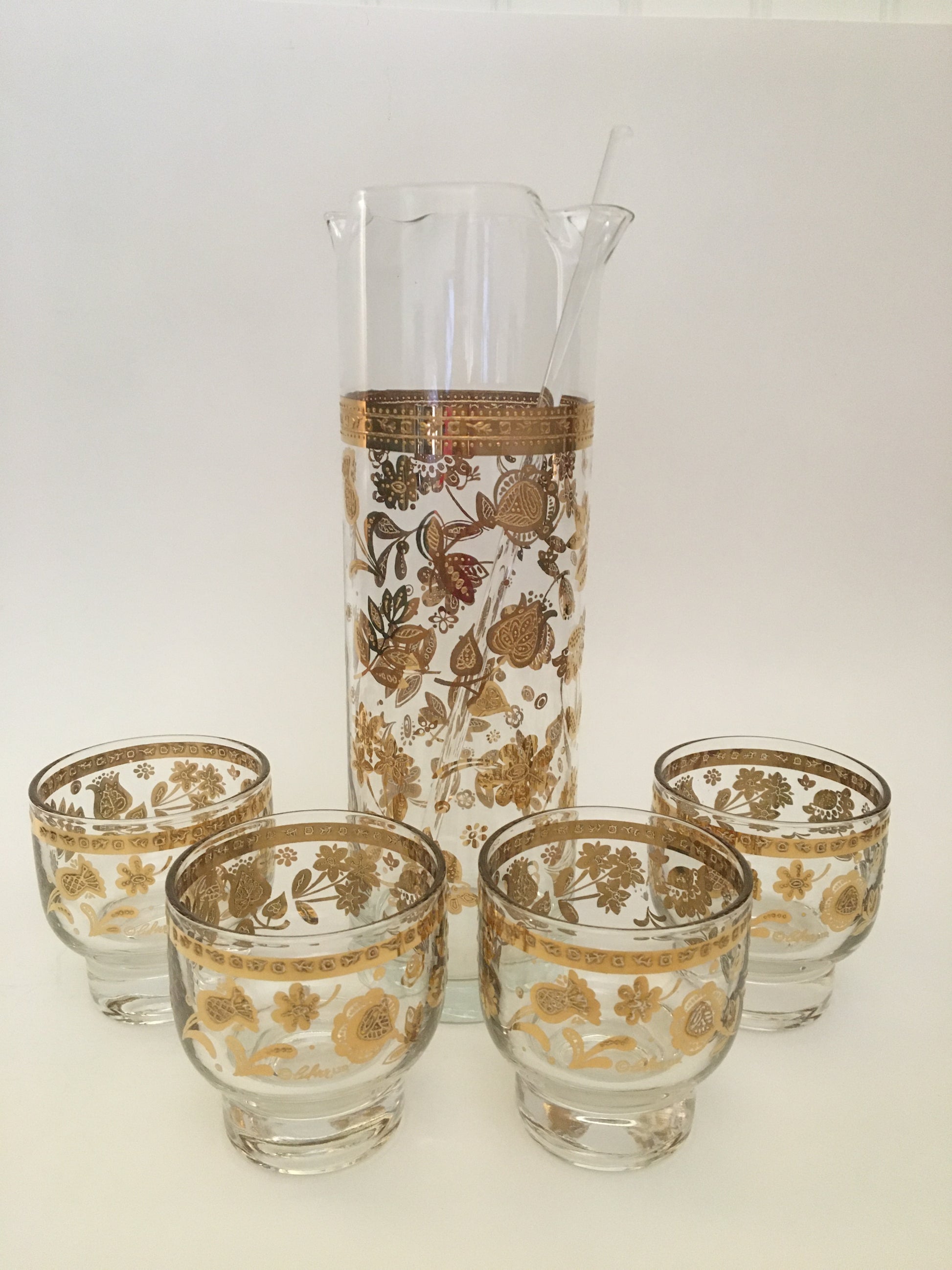Cocktail Pitcher and 4 footed cocktail glasses. Glass stir stick included.