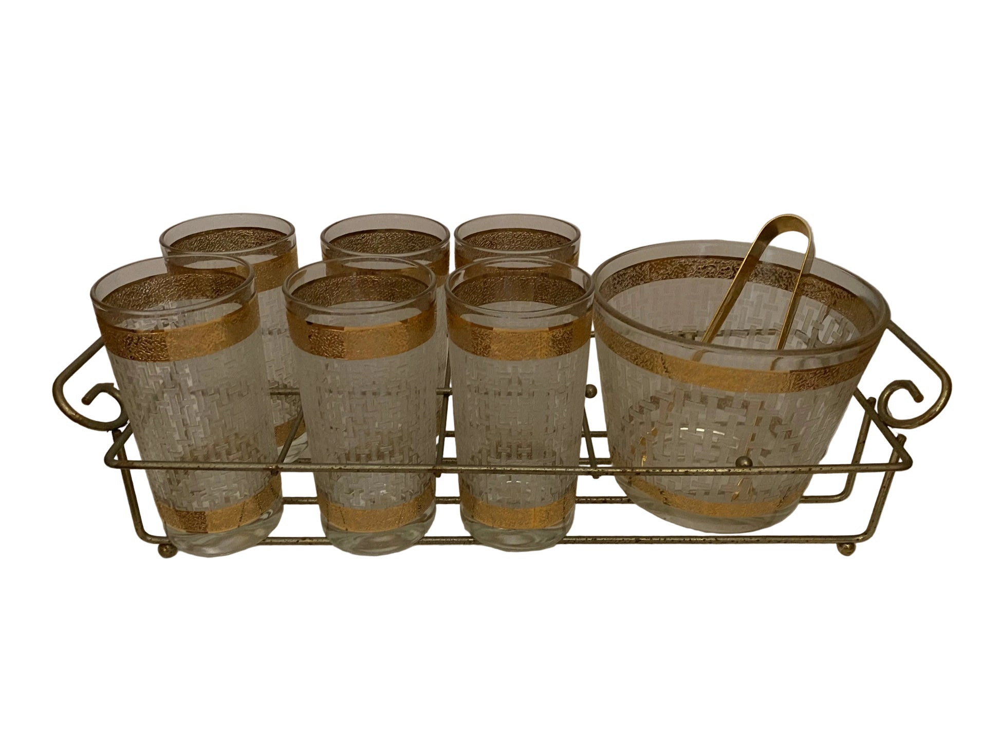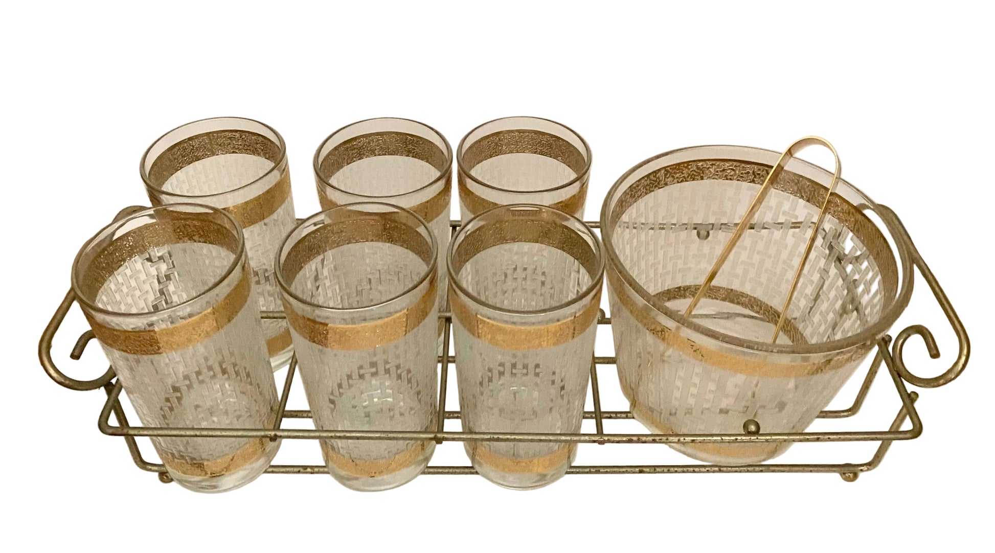 Culver White Basketweave Hiball Caddy with Ice Bucket and Tongs