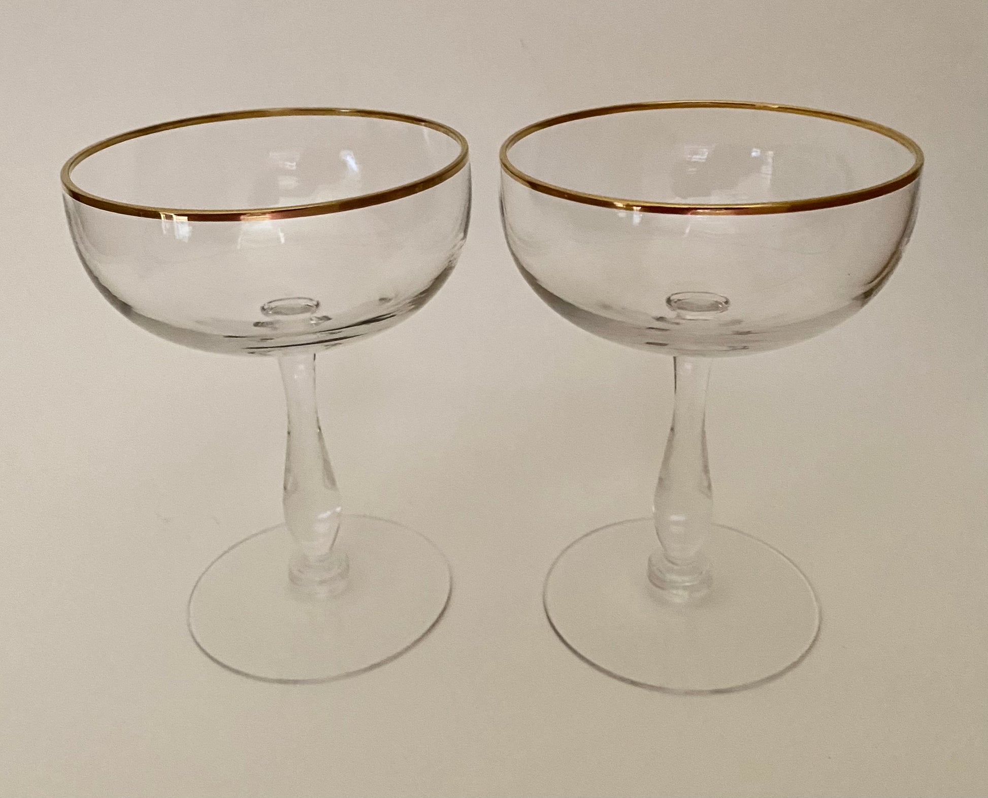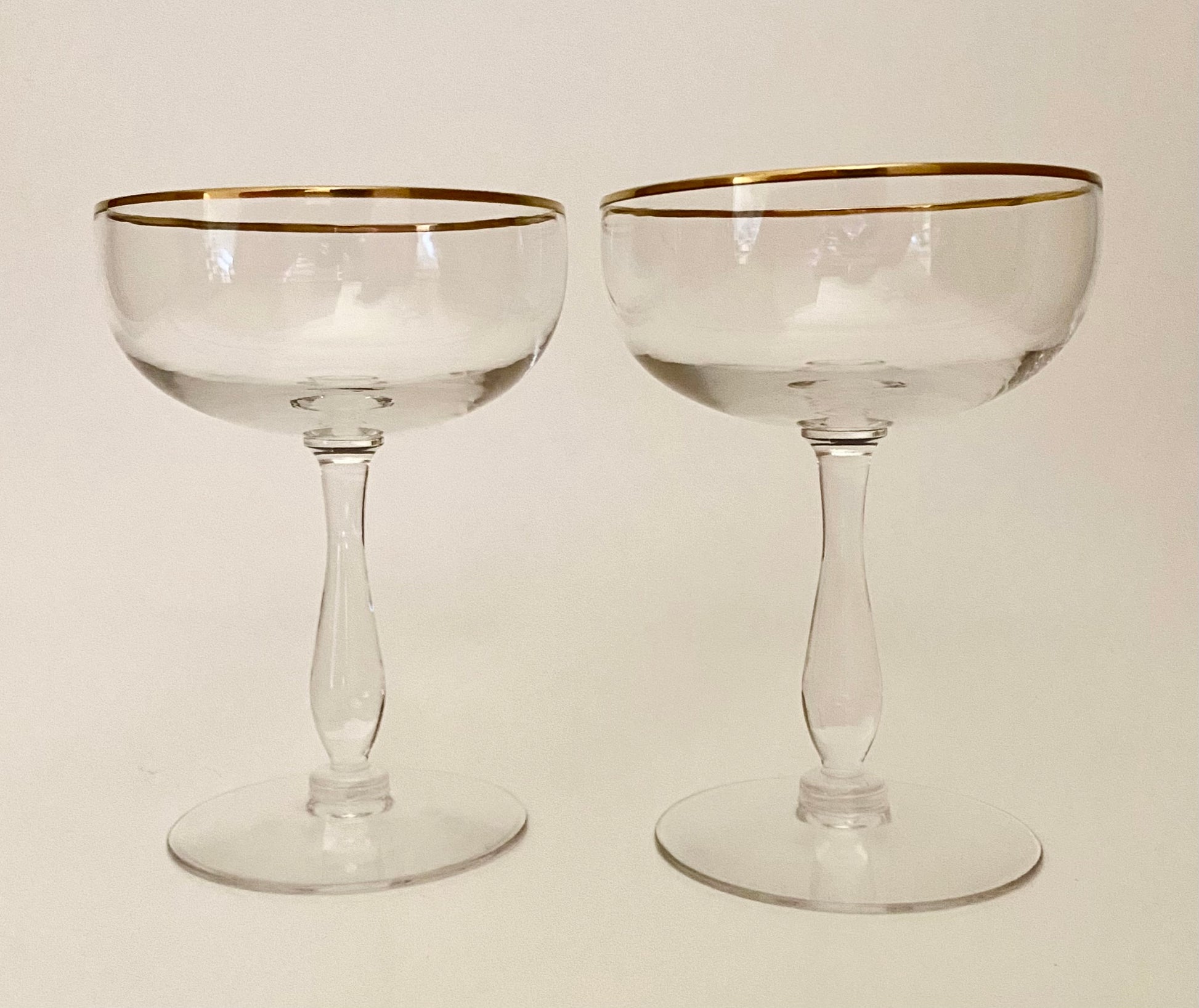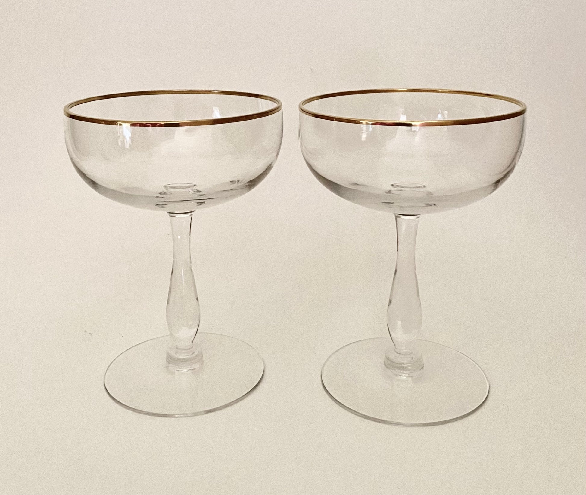 Vintage Gold Rim Coupe/Champagne Glasses (Pair) 2 Available