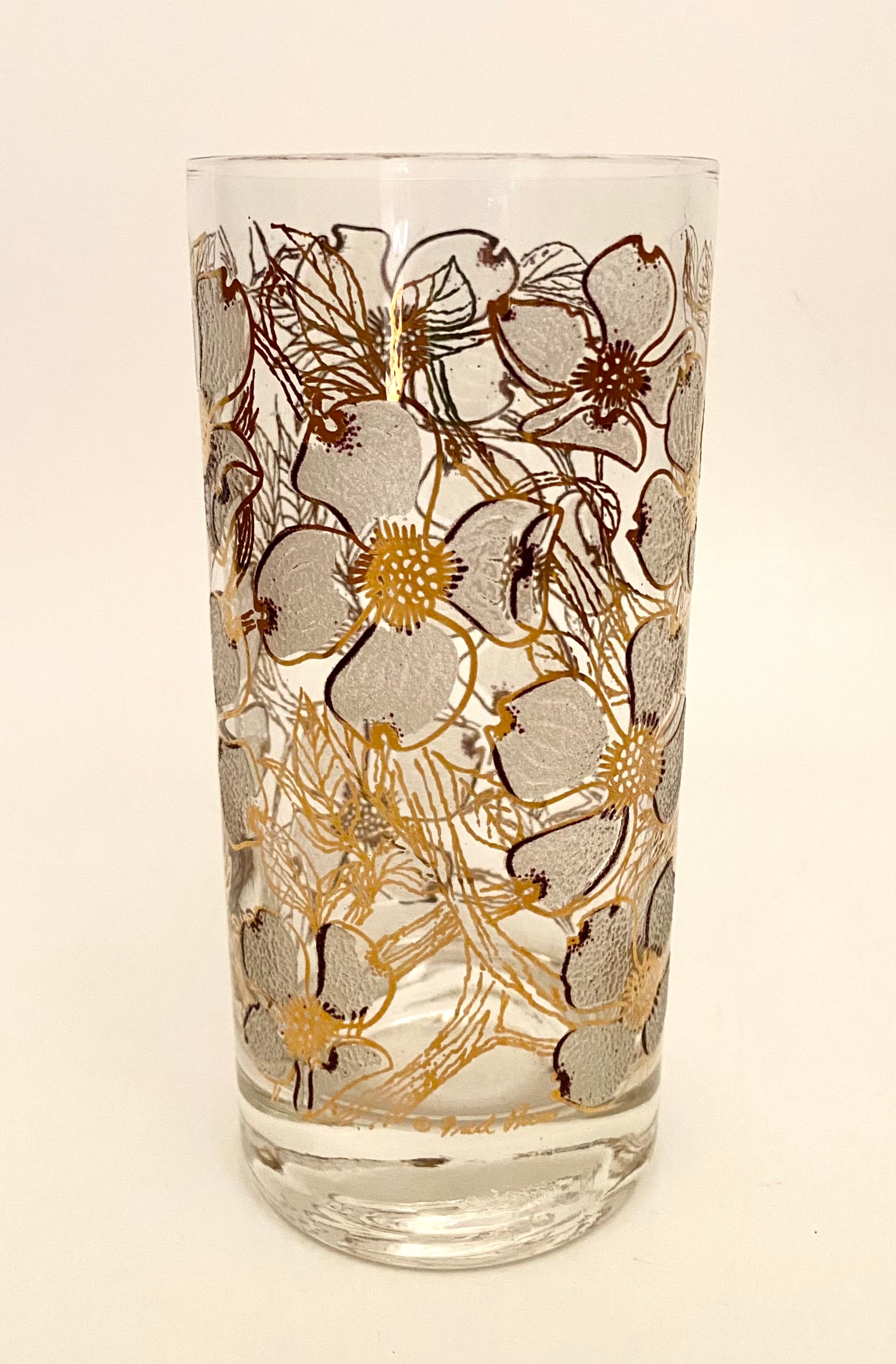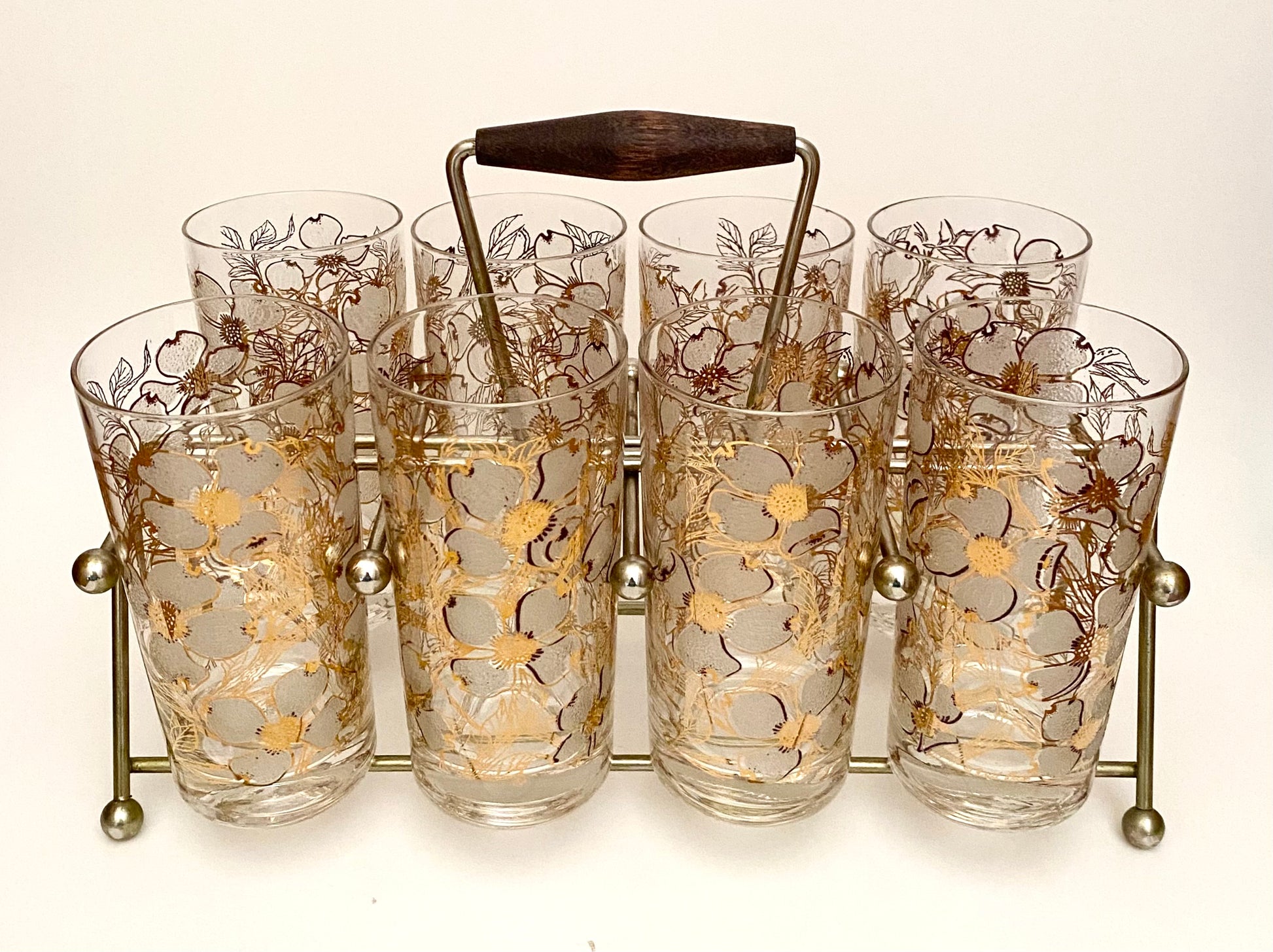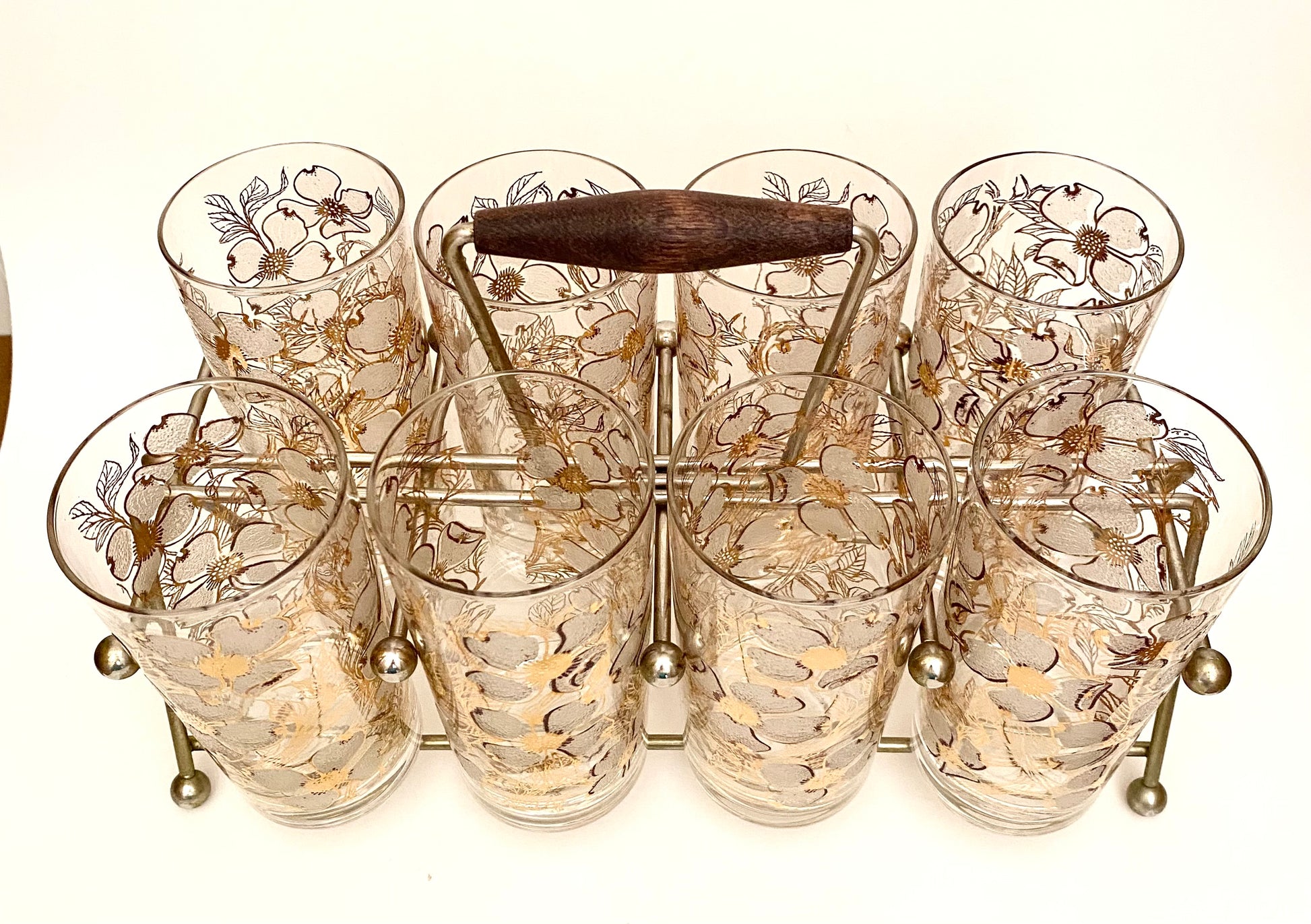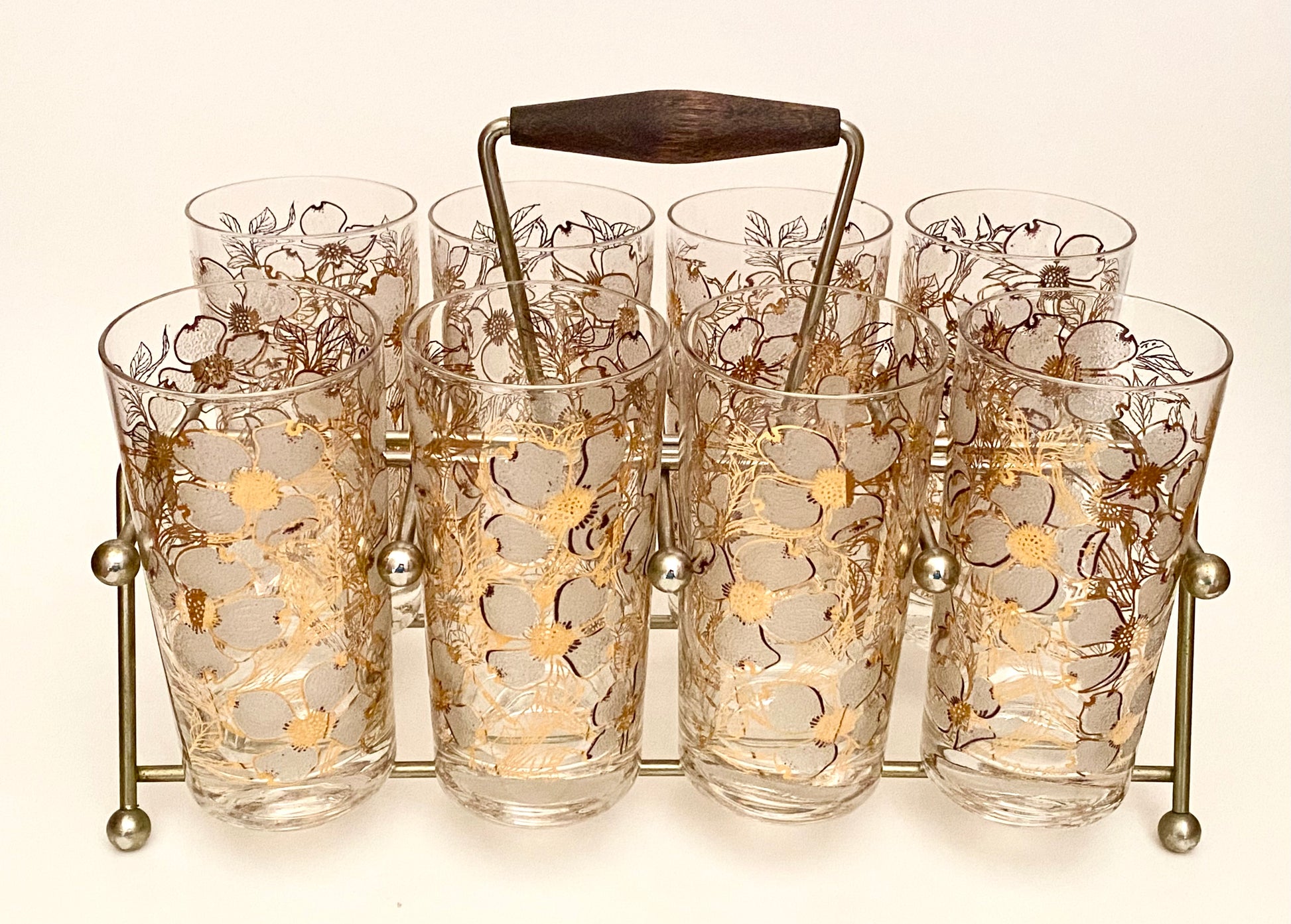 Fred Press White Dogwood Hiballs/Water Glasses with caddy.