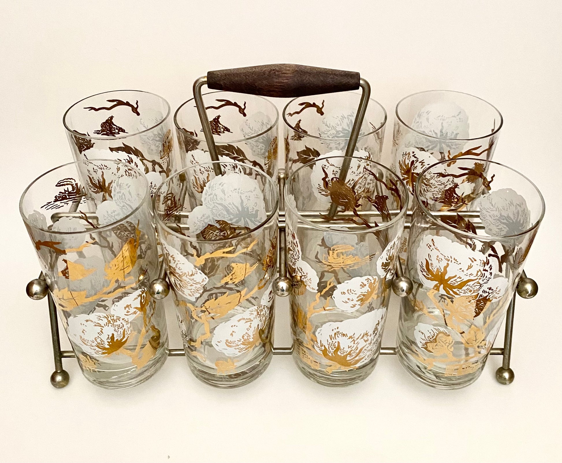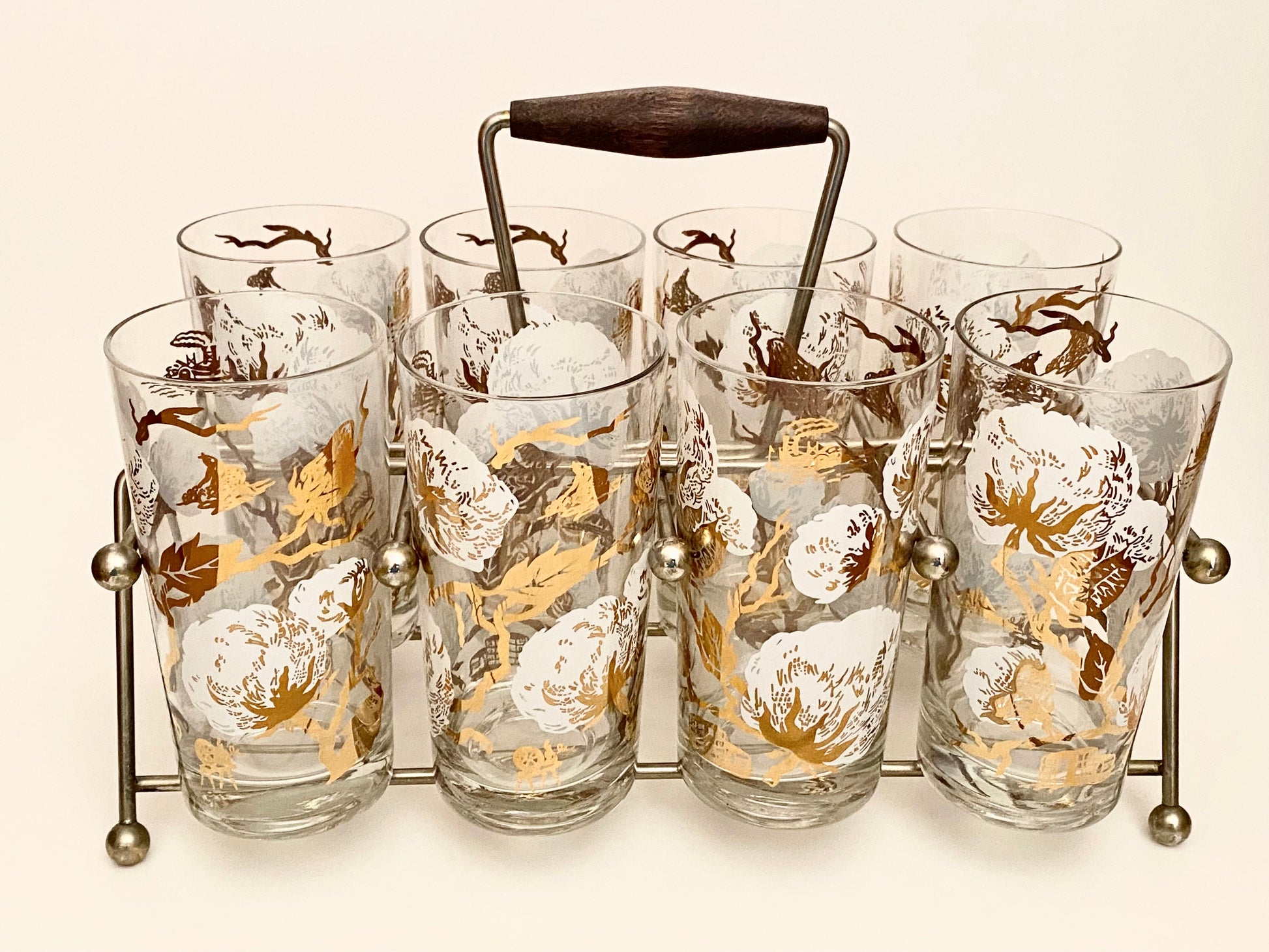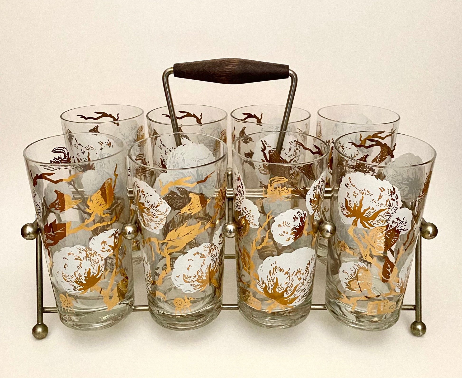 Cotton Boll Hiballs/Water Glasses with caddy.